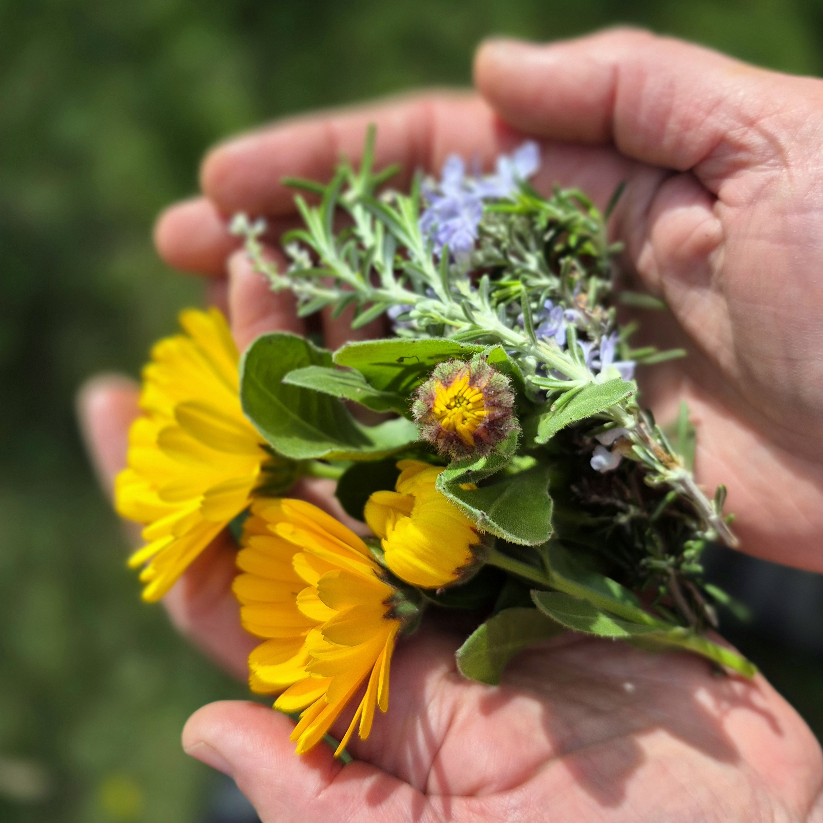 Lo que sí tenemos son plantas que elegimos por sus maravillosas propiedades que toda piel necesita: antioxidantes, regeneradoras, calmantes, hidratantes, antiinflamatorias, protectoras… las combinamos para crear productos amorosos y restauradores de la piel y el cabello.